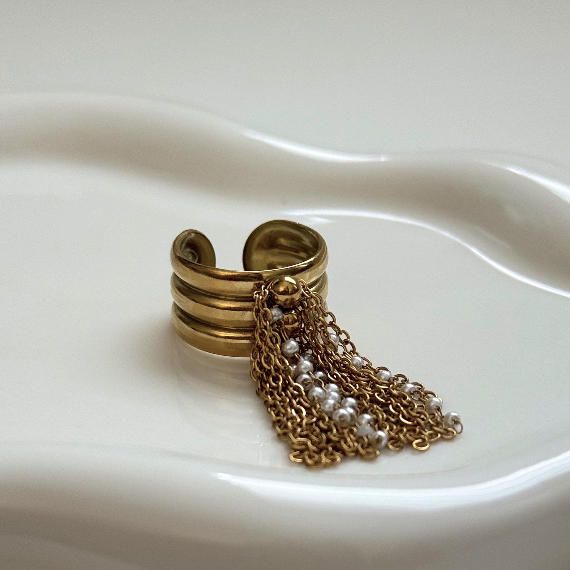 pearl and chains ring