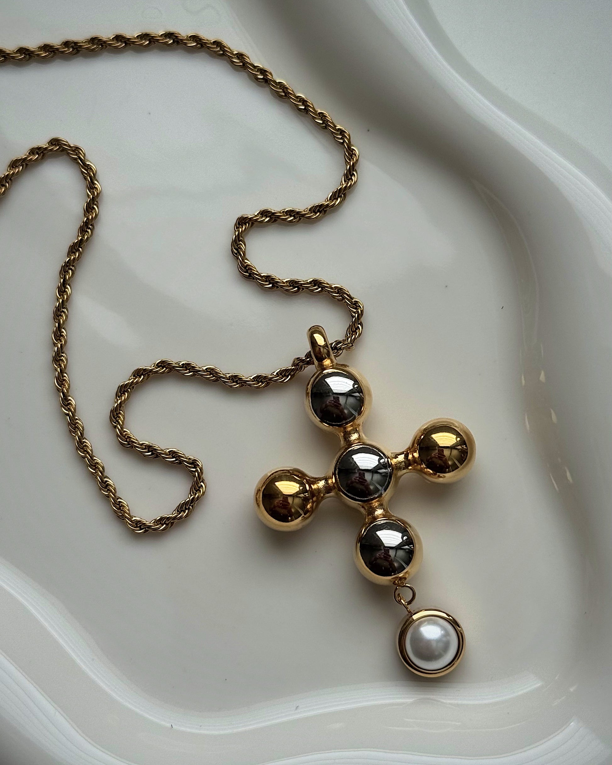 Two tone cross necklace